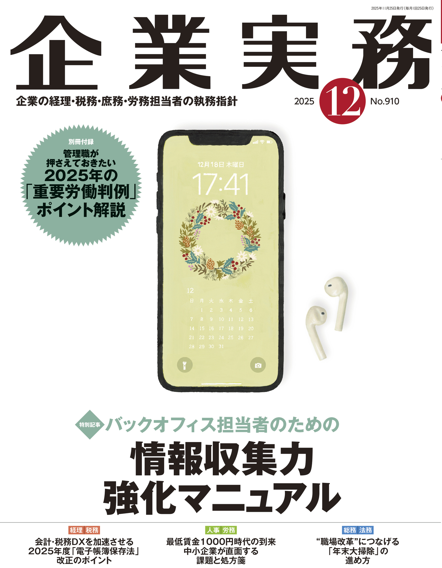 企業実務は、企業の経理・総務・人事などの業務を少人数で兼任する忙しいバックオフィス担当者に向けた専門情報誌です。